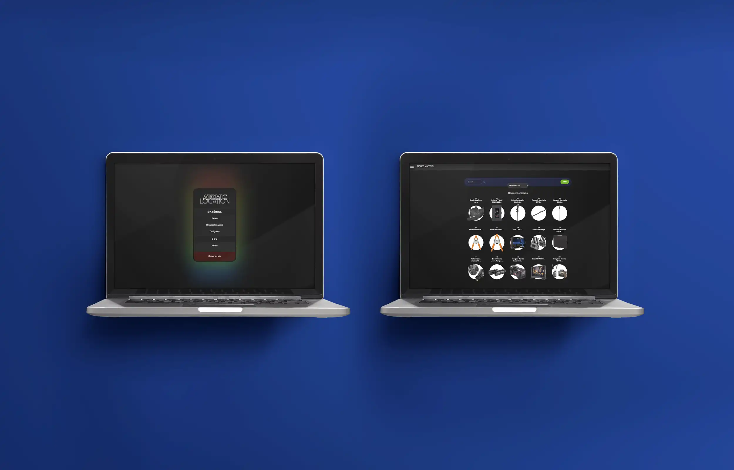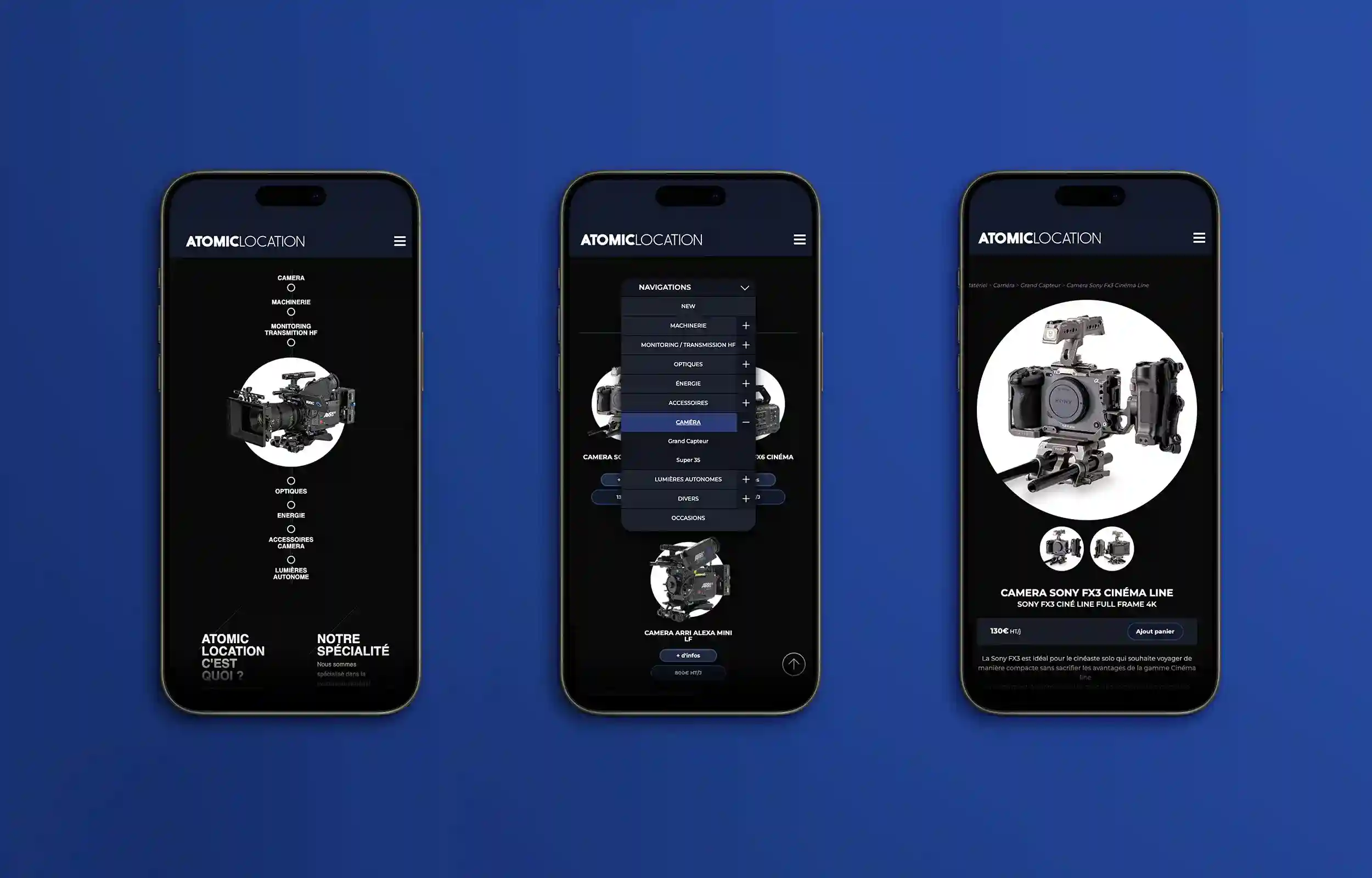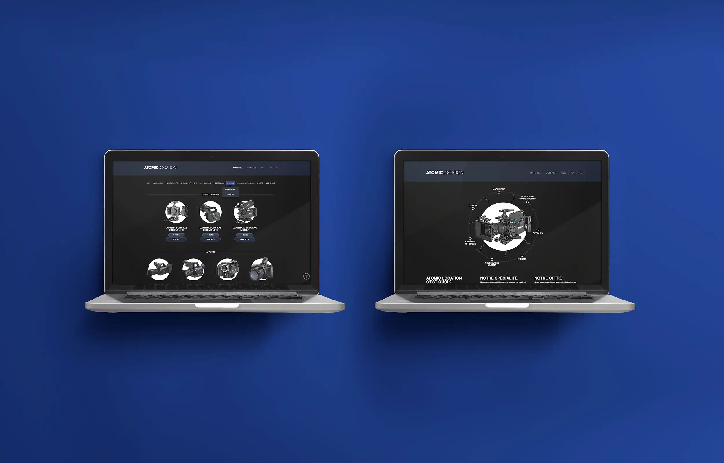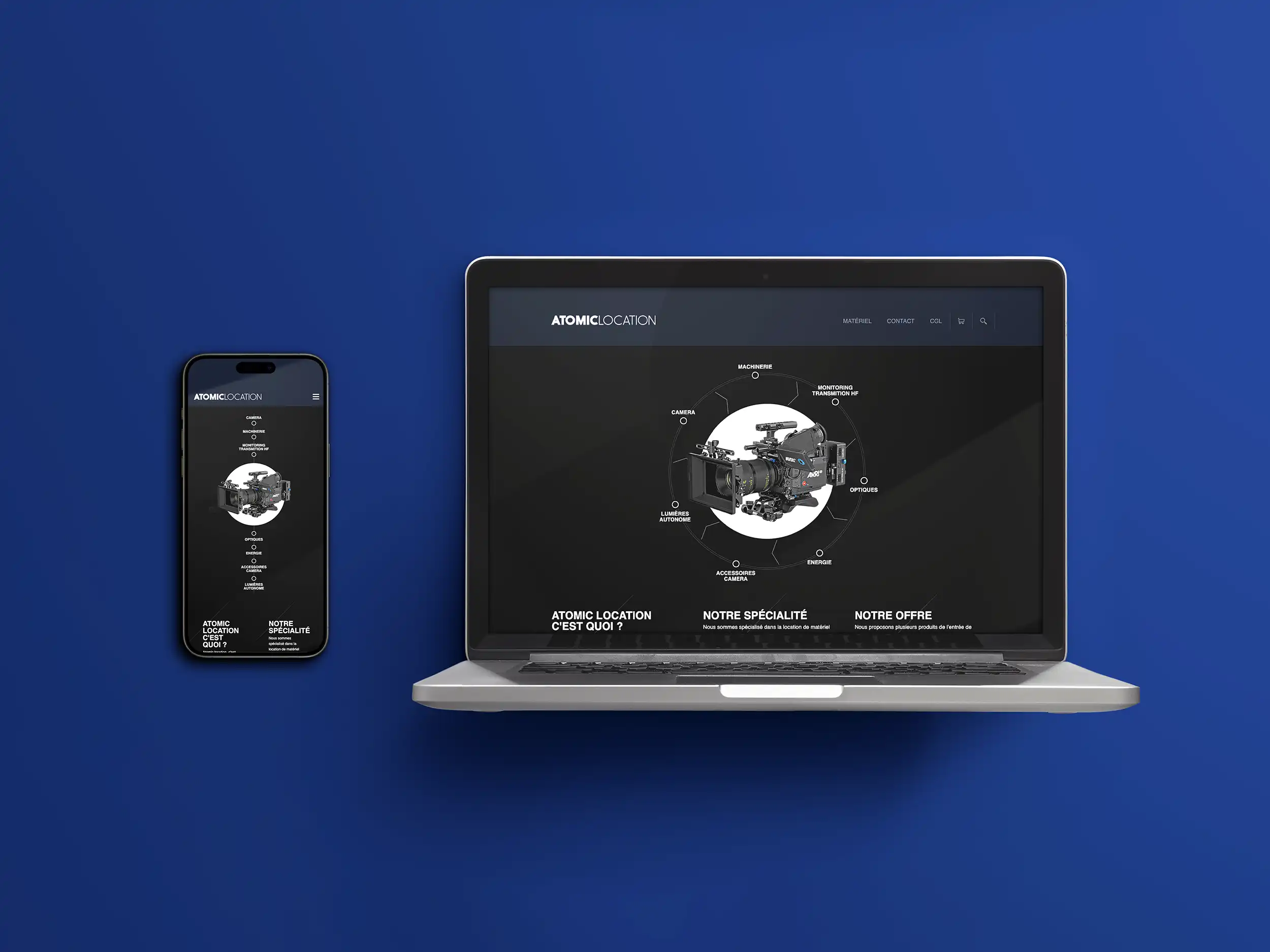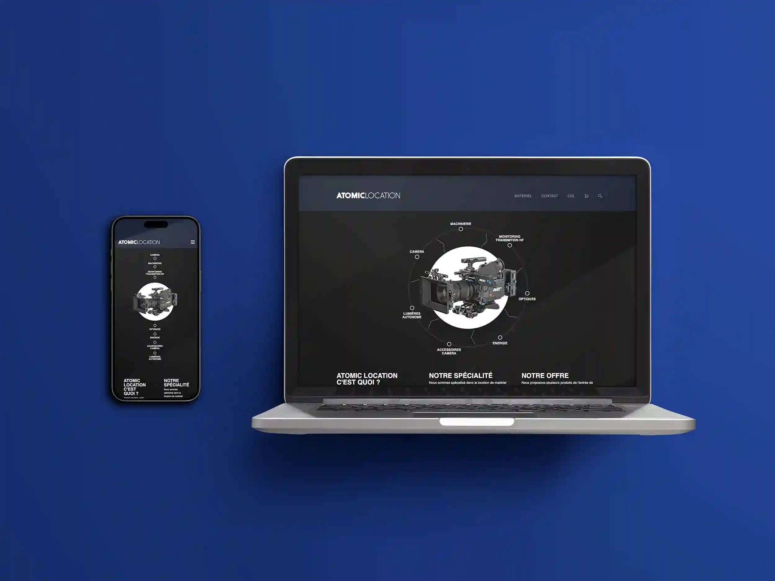 Création webdesign et intégration/développement du site de la société de location de matériel de tournage Atomic Location.