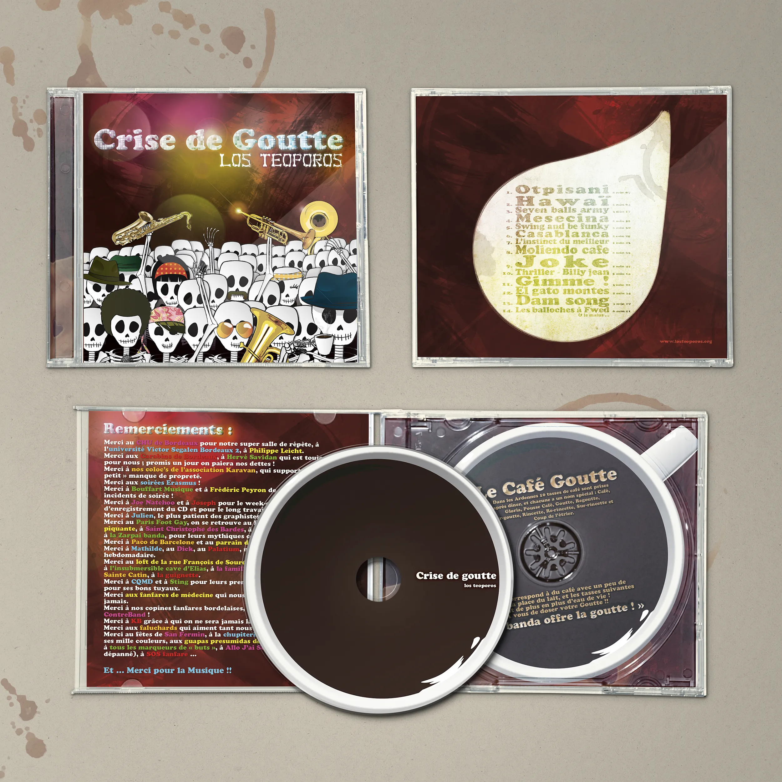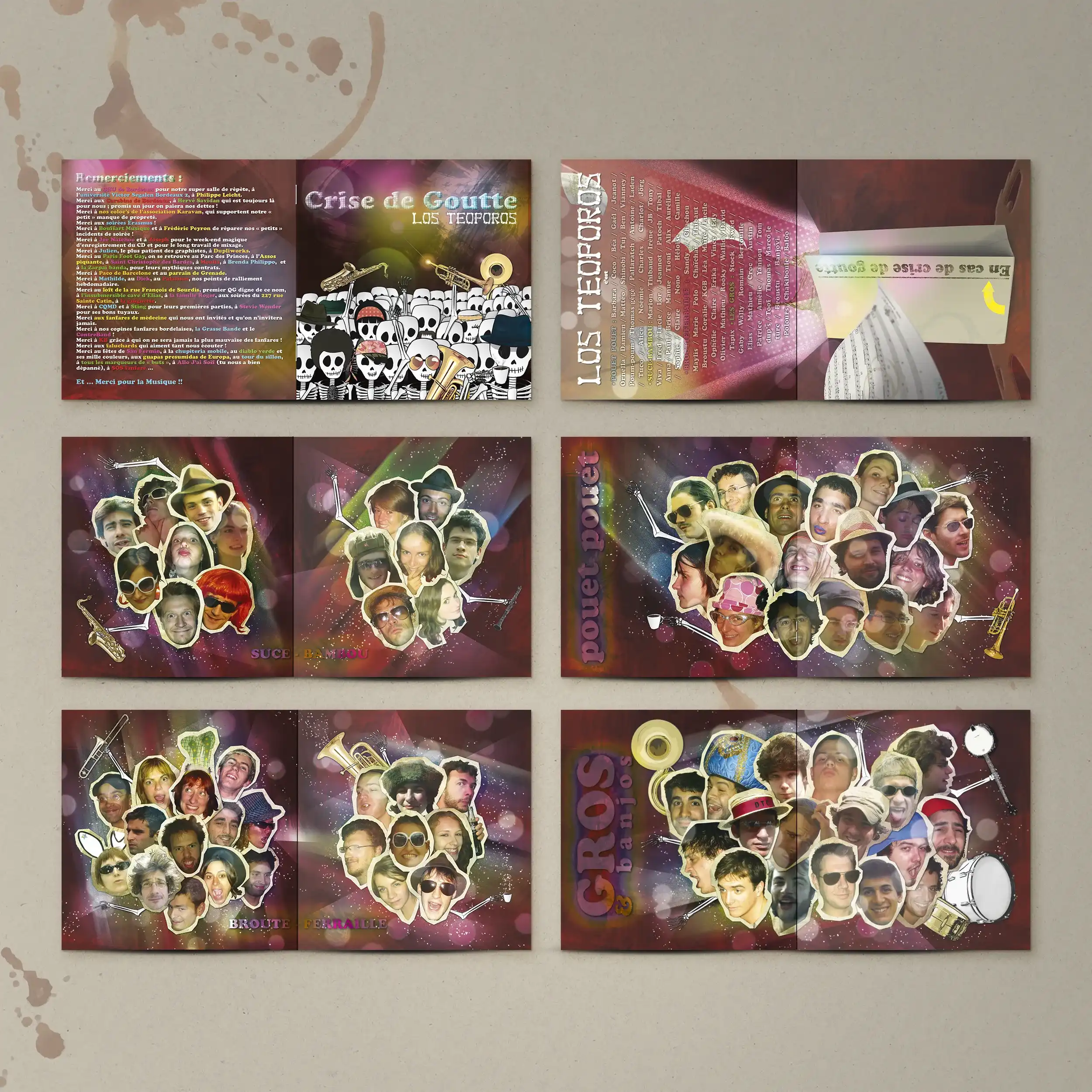 Création de la cover de l'album Crise de goutte de la fanfare Los Teoporos, avec la multiplication de leur squelette musicien historique.