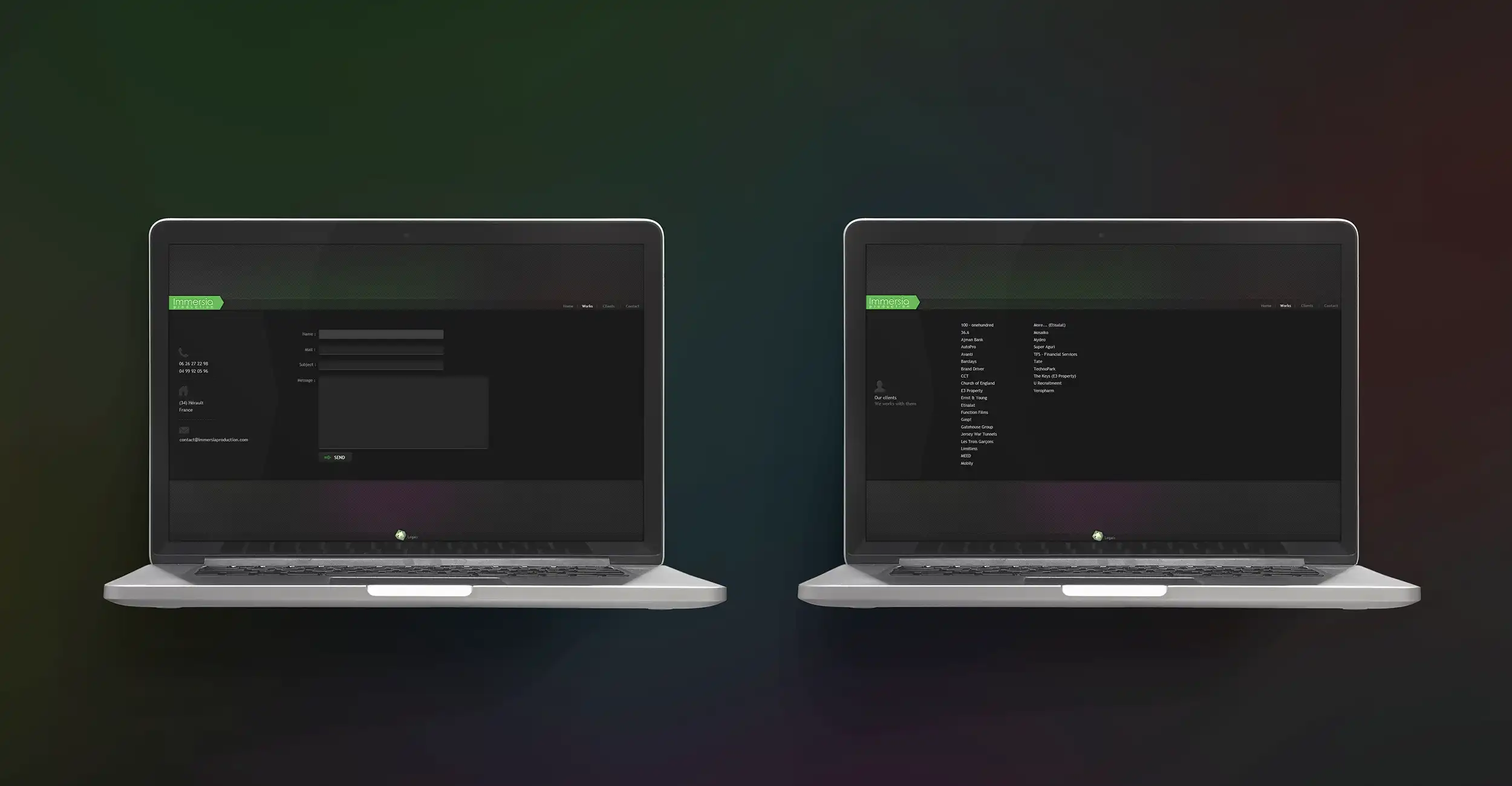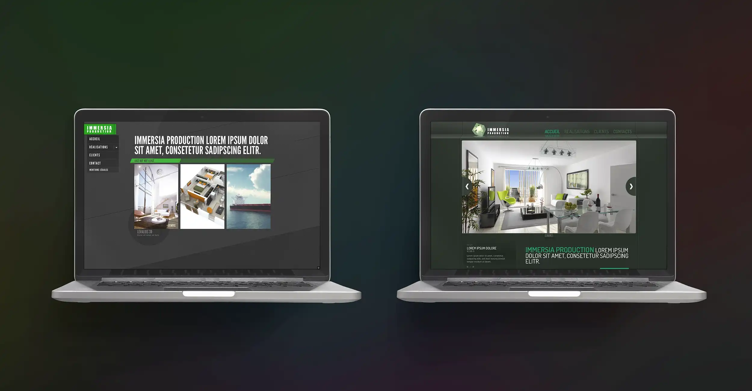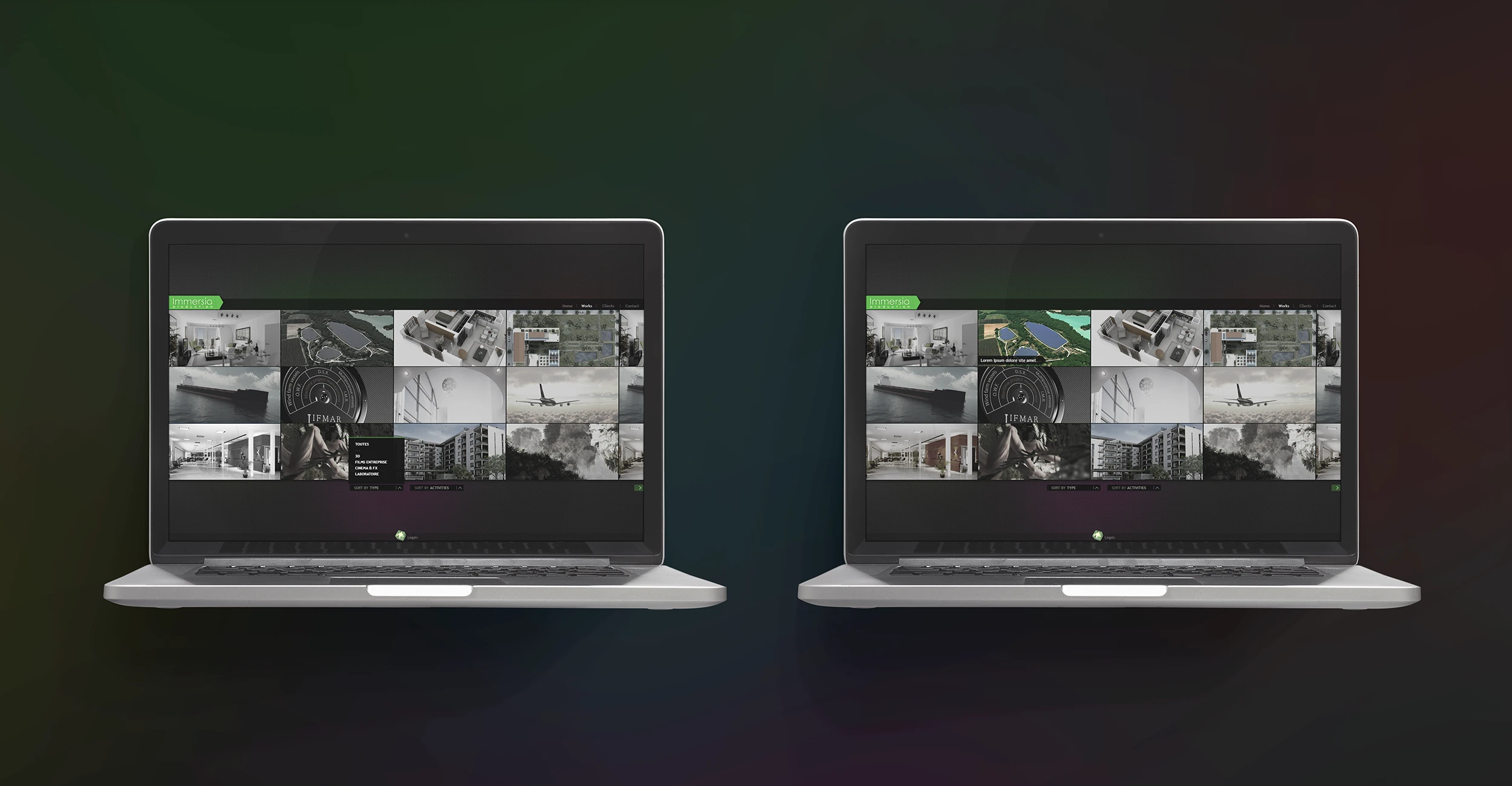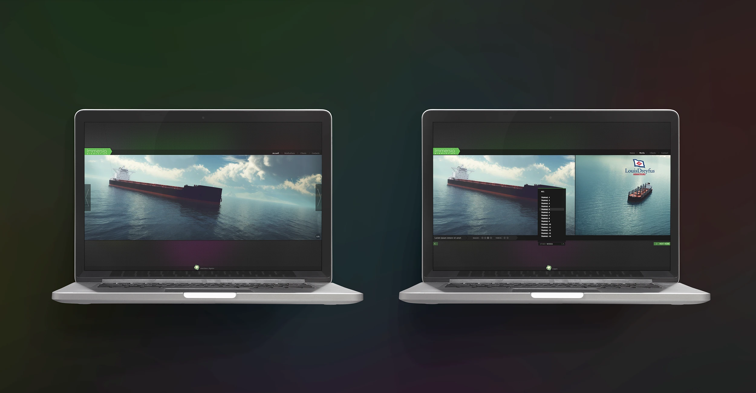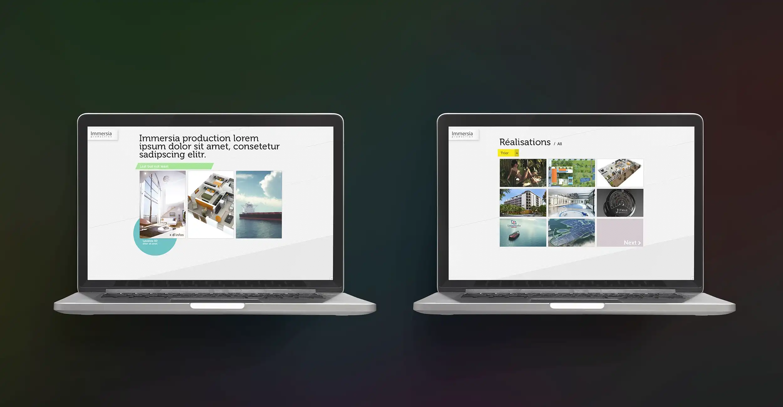 Conception visuelle du site web portfolio de l'agence Immersia Production.