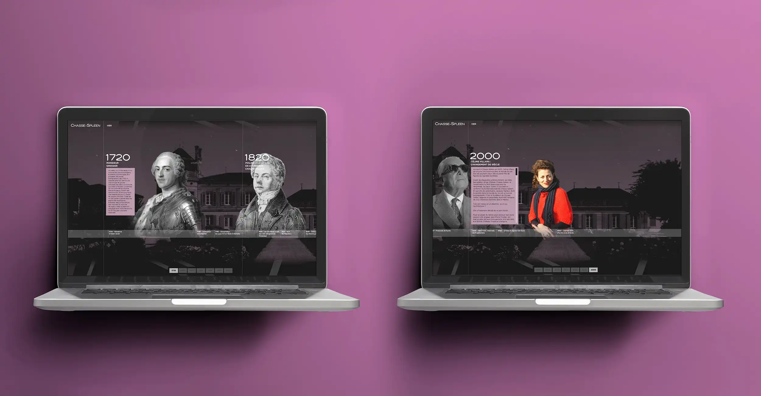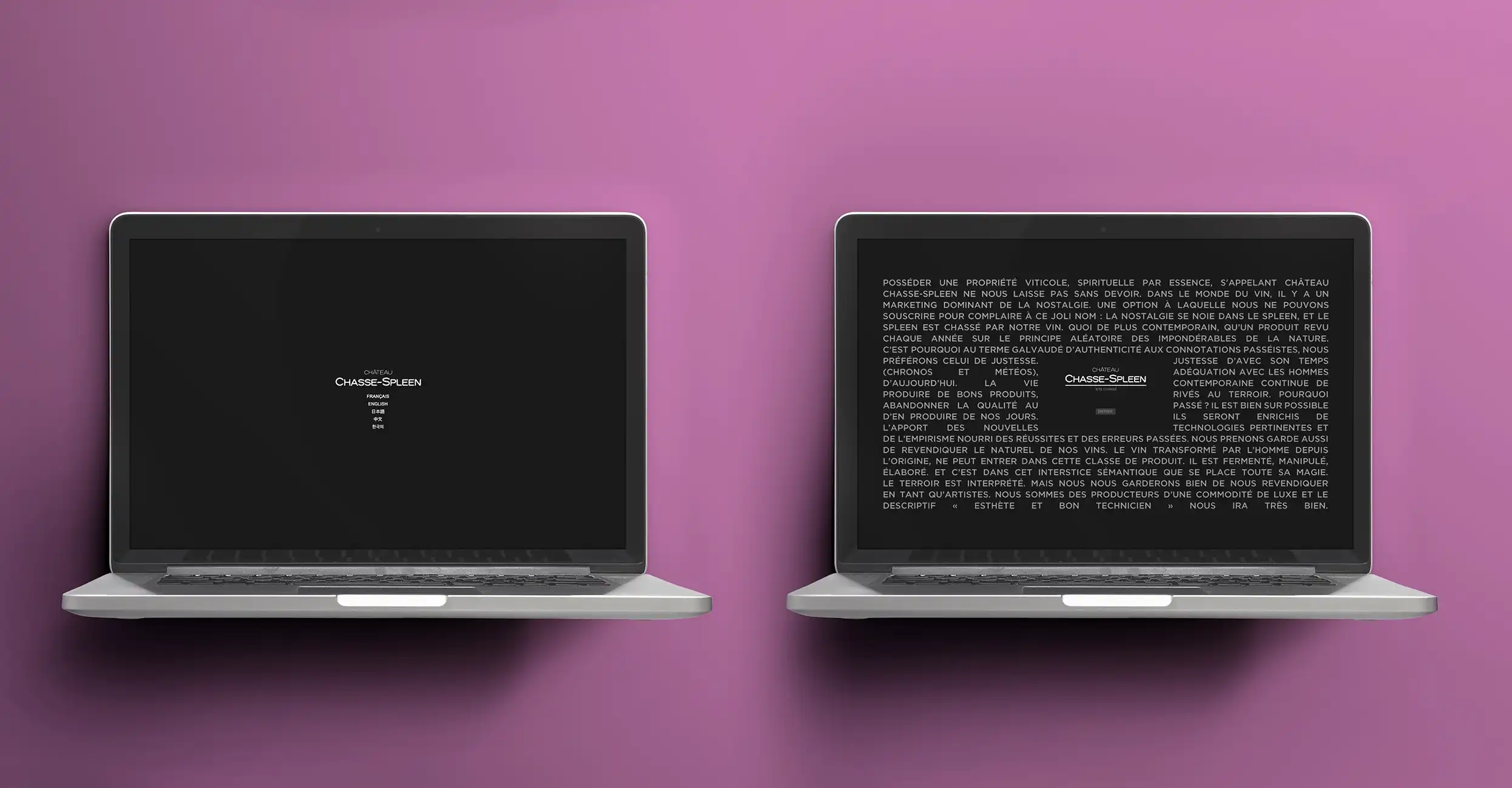 Réalisation du site flash multilingue du Château Chasse-Spleen, incluant retouches, animations, développement et intégration.