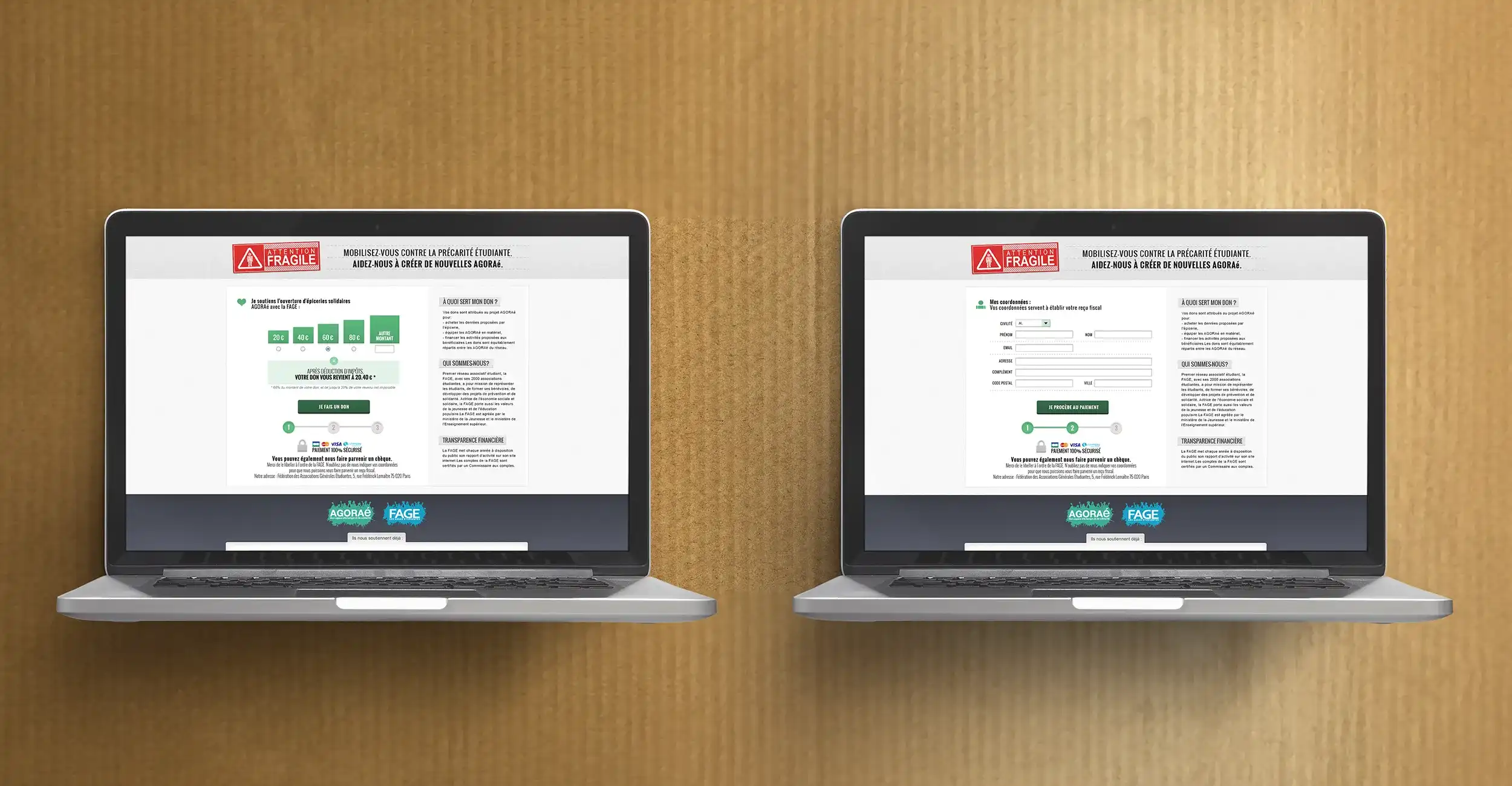Création d'une landing page et d'un sticker pour la campagne de collecte de dons en faveur des Agoraé de la FAGE.
