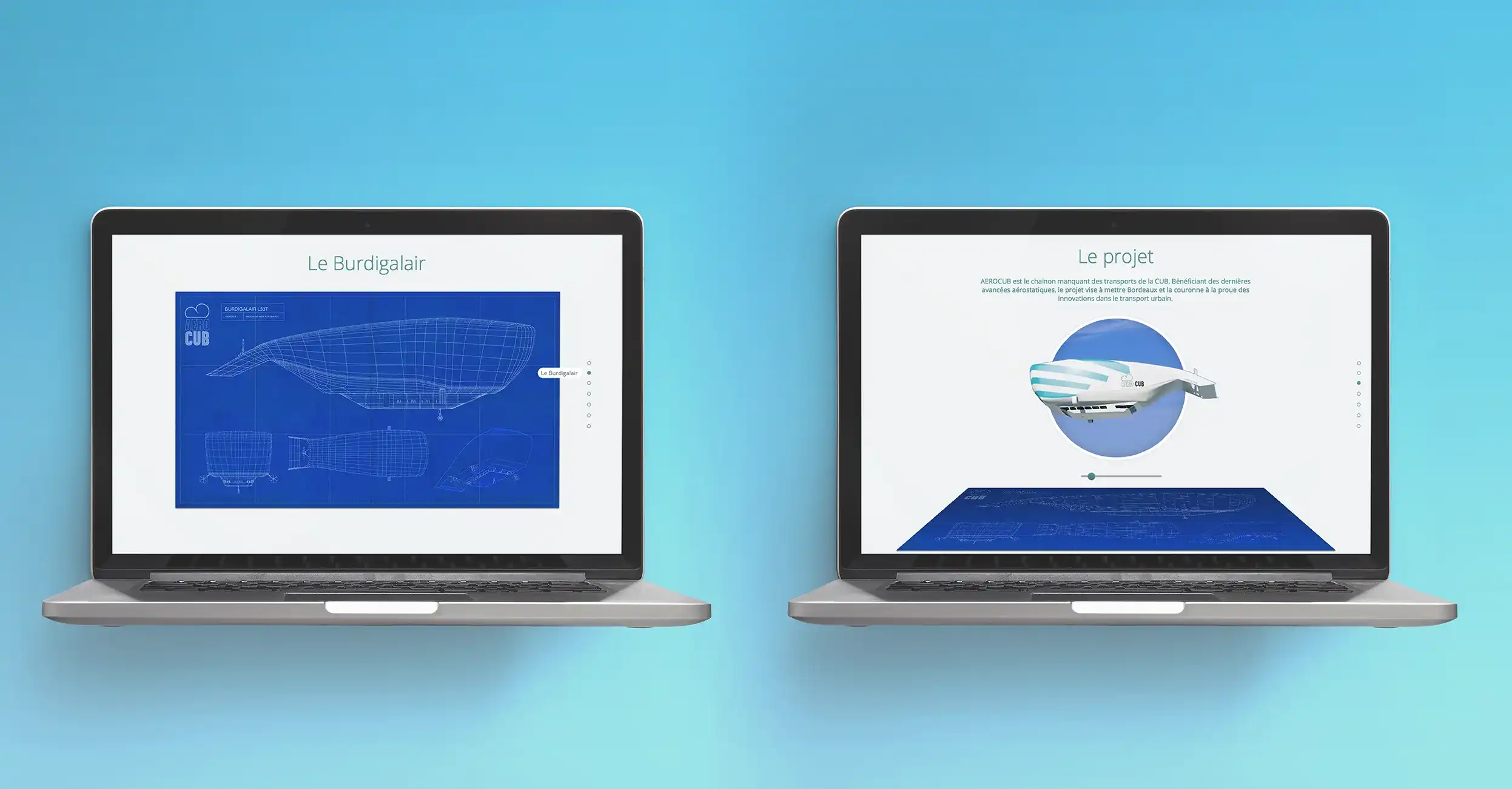 Création d'un site one-page pour présenter le projet fictif Aerocub, en collaboration avec l'agence Skale.