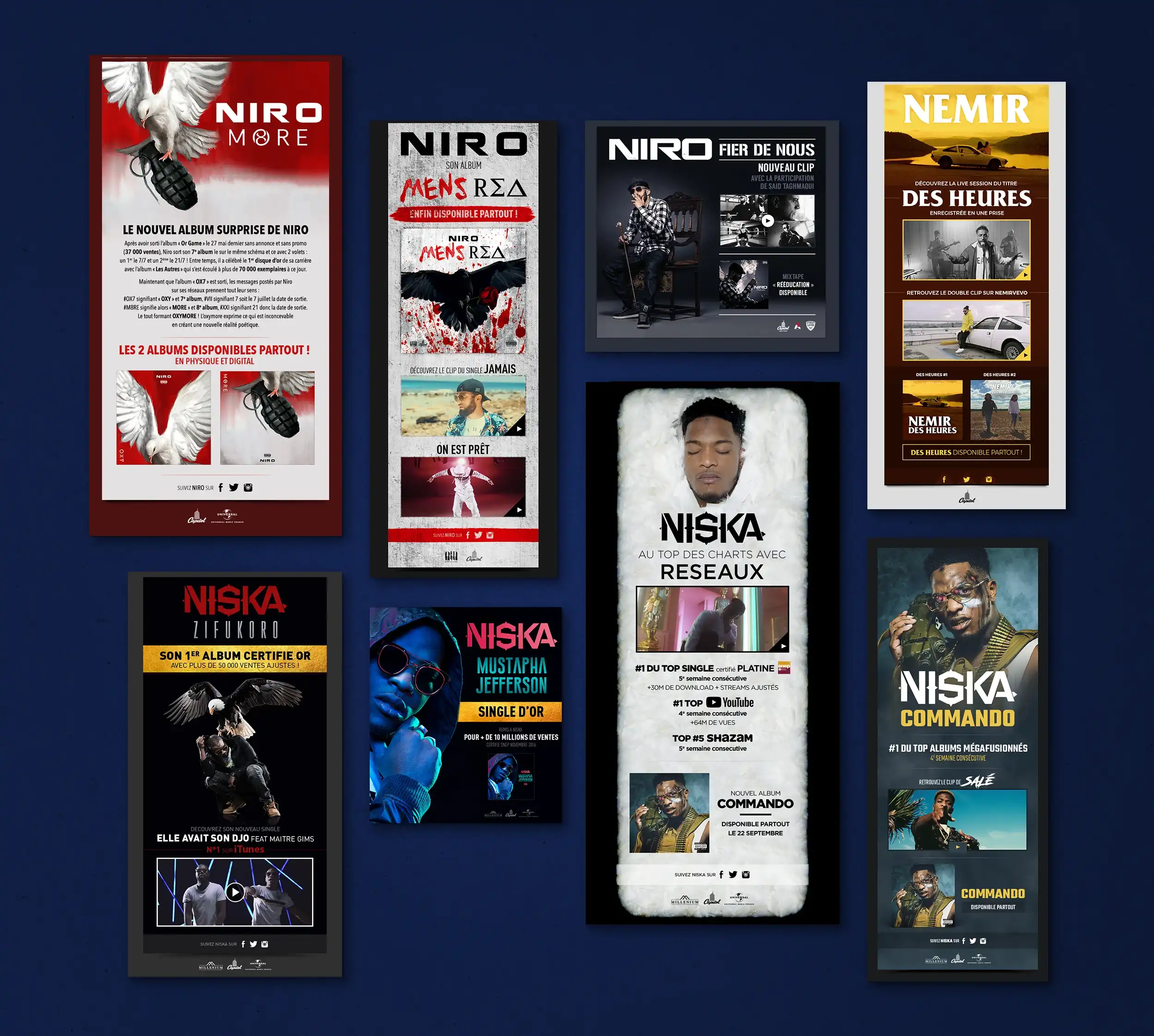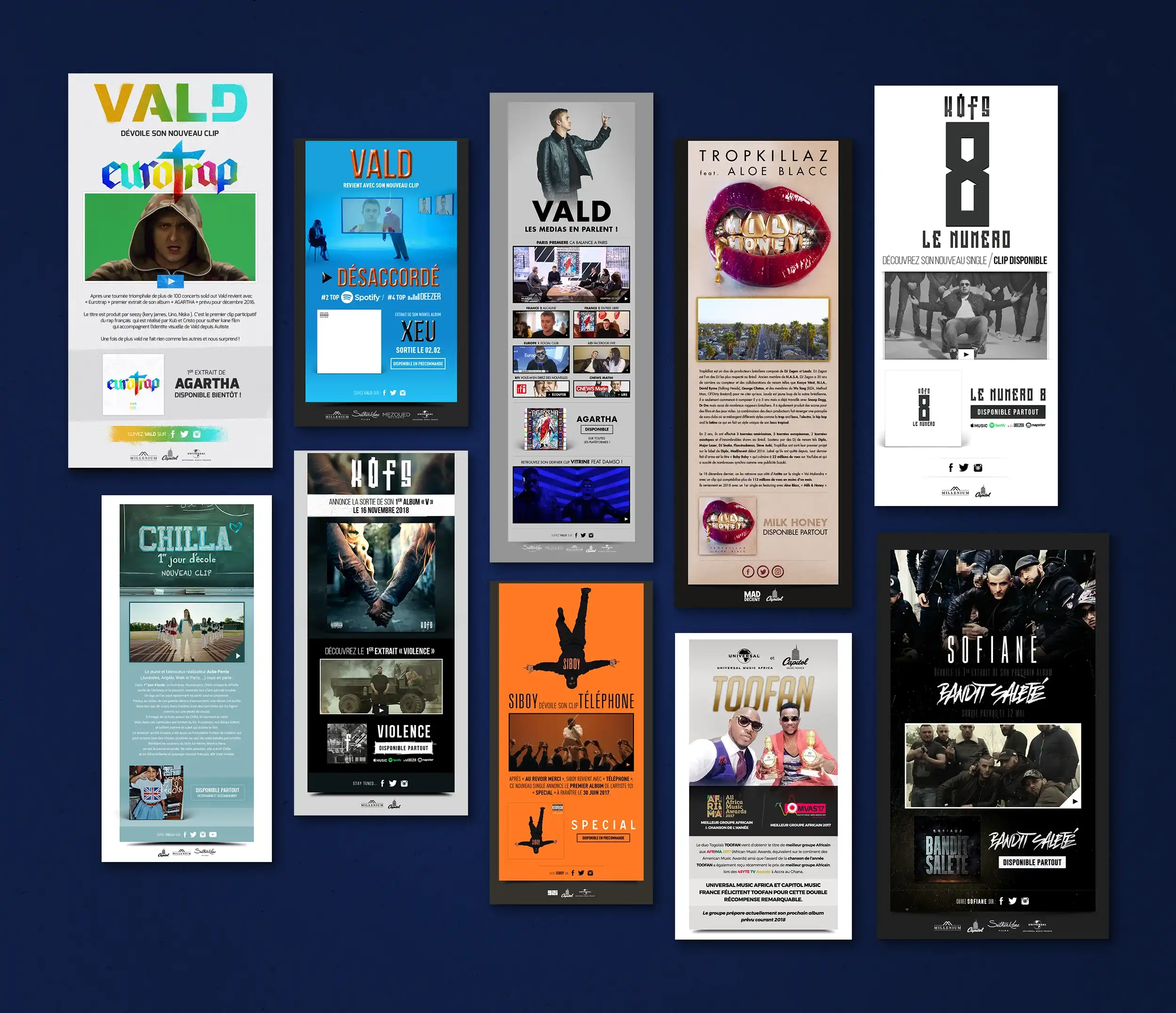 Éléments web : Ecards, newsletters, newsletters responsive, mini-site, modules web, vidéos, pubs web, habillages, ...