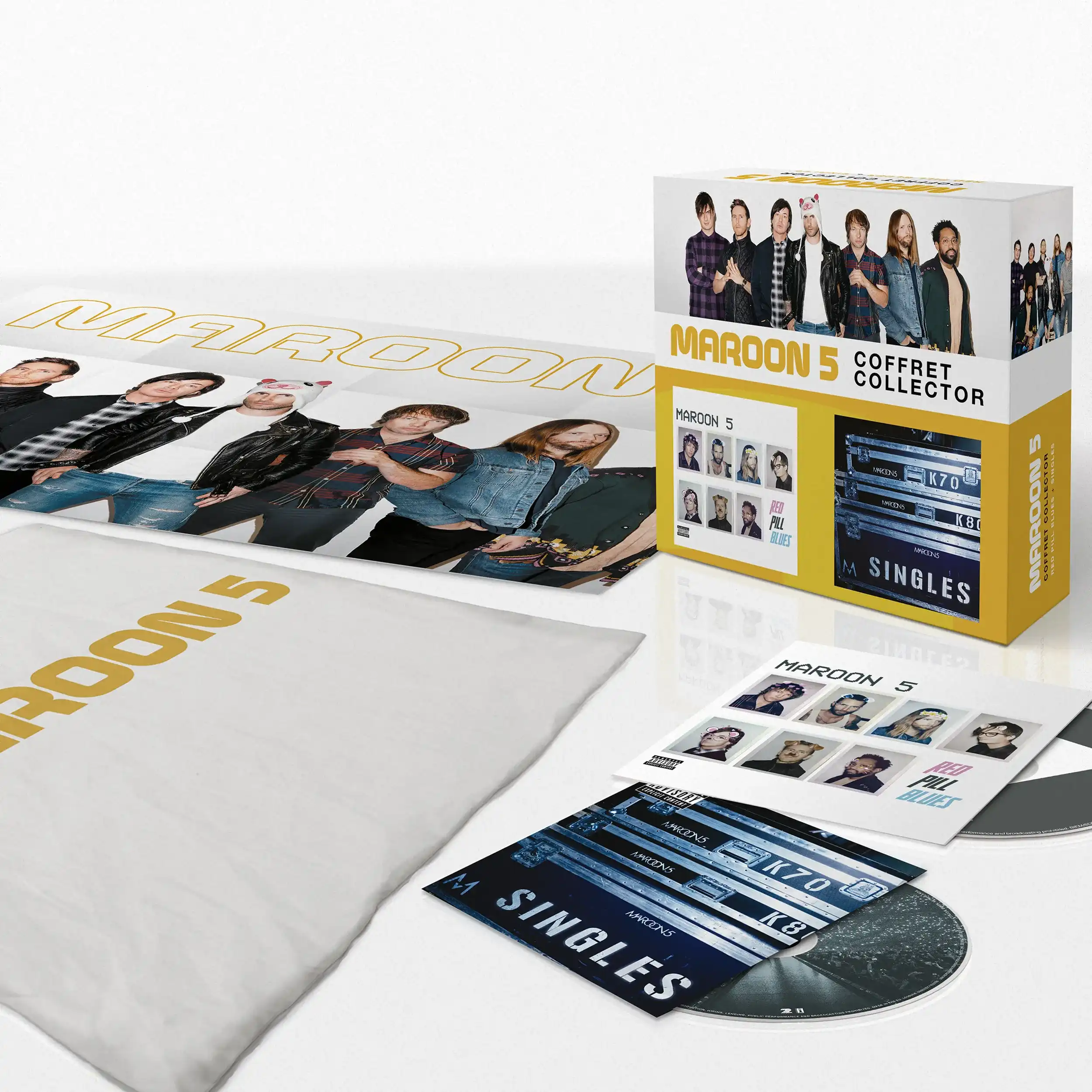 Création de la cover et de la mise en page du coffret 2 CDs Maroon5 avec totebag et poster.