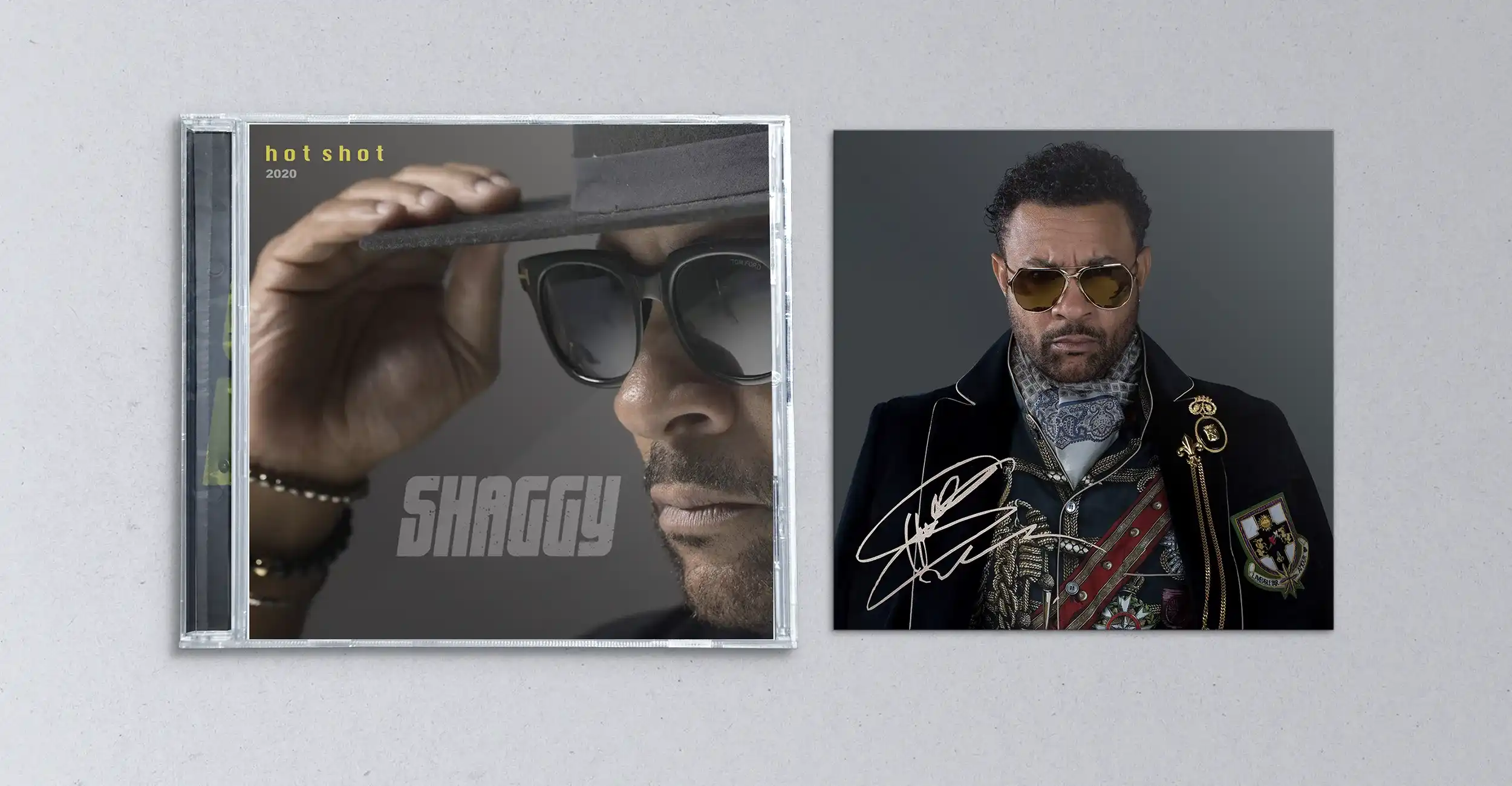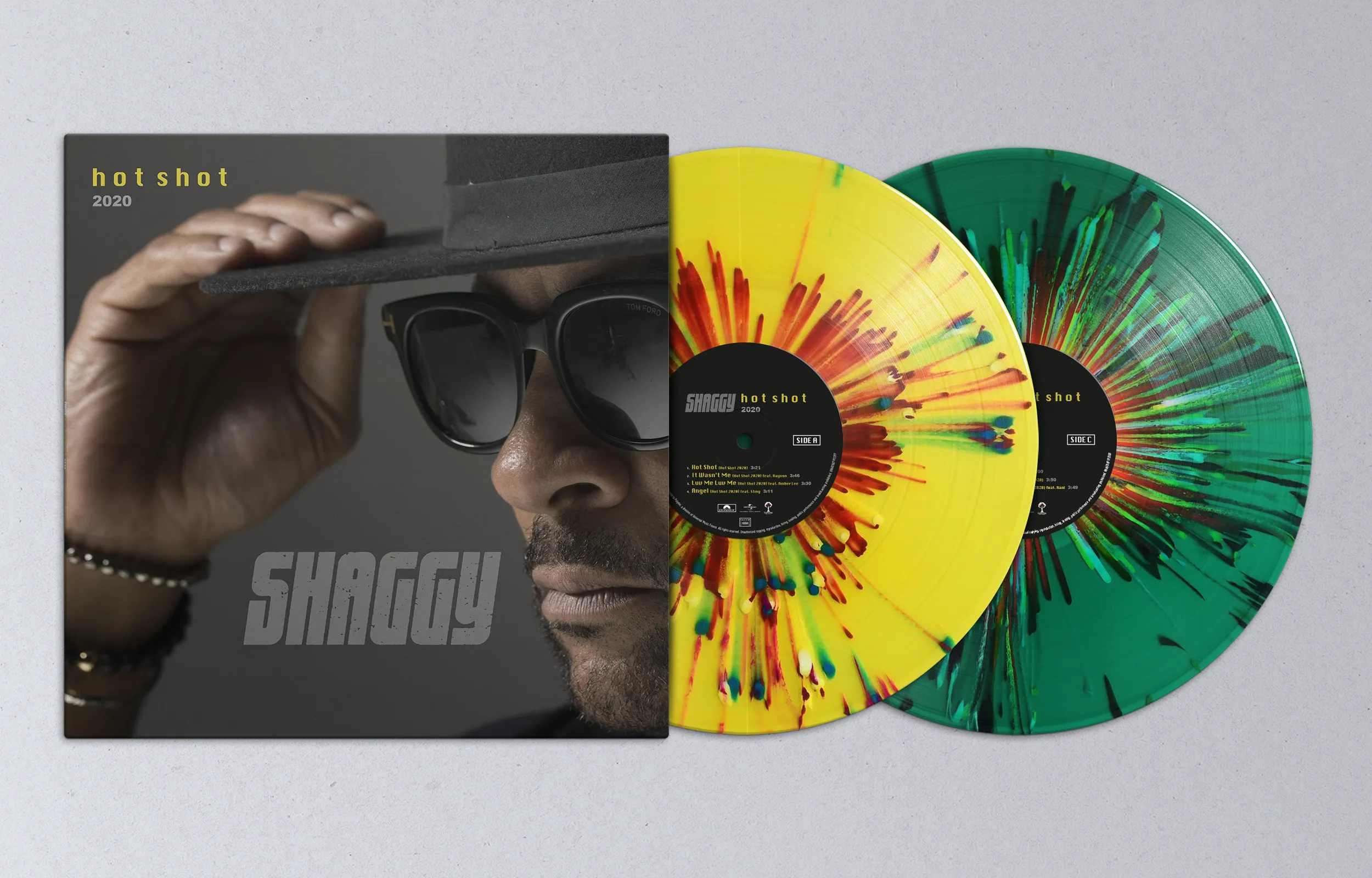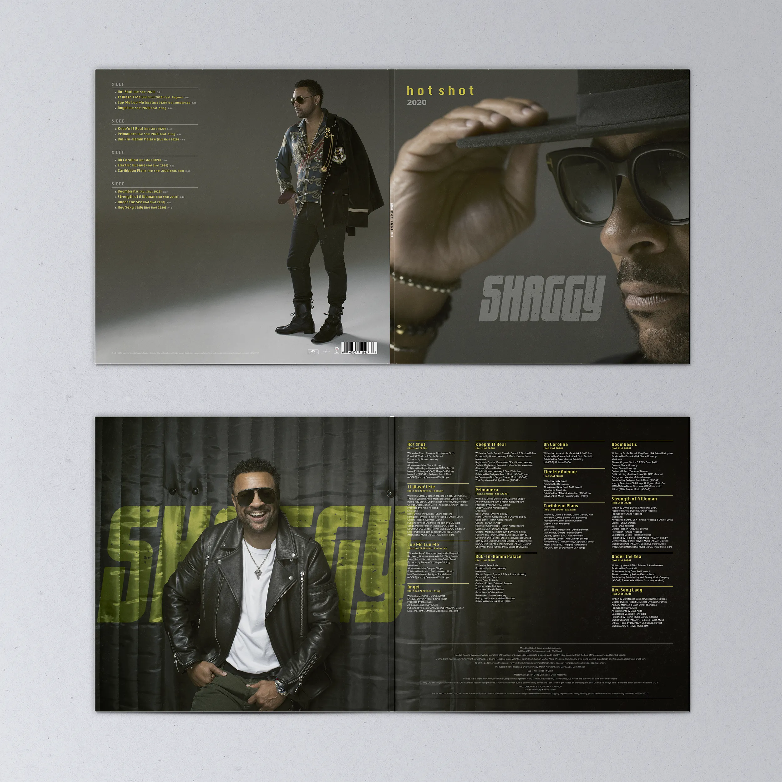 Création des produits, cd et vinyles, et du stickage pour l'album de Shaggy / Hotshot 2020.