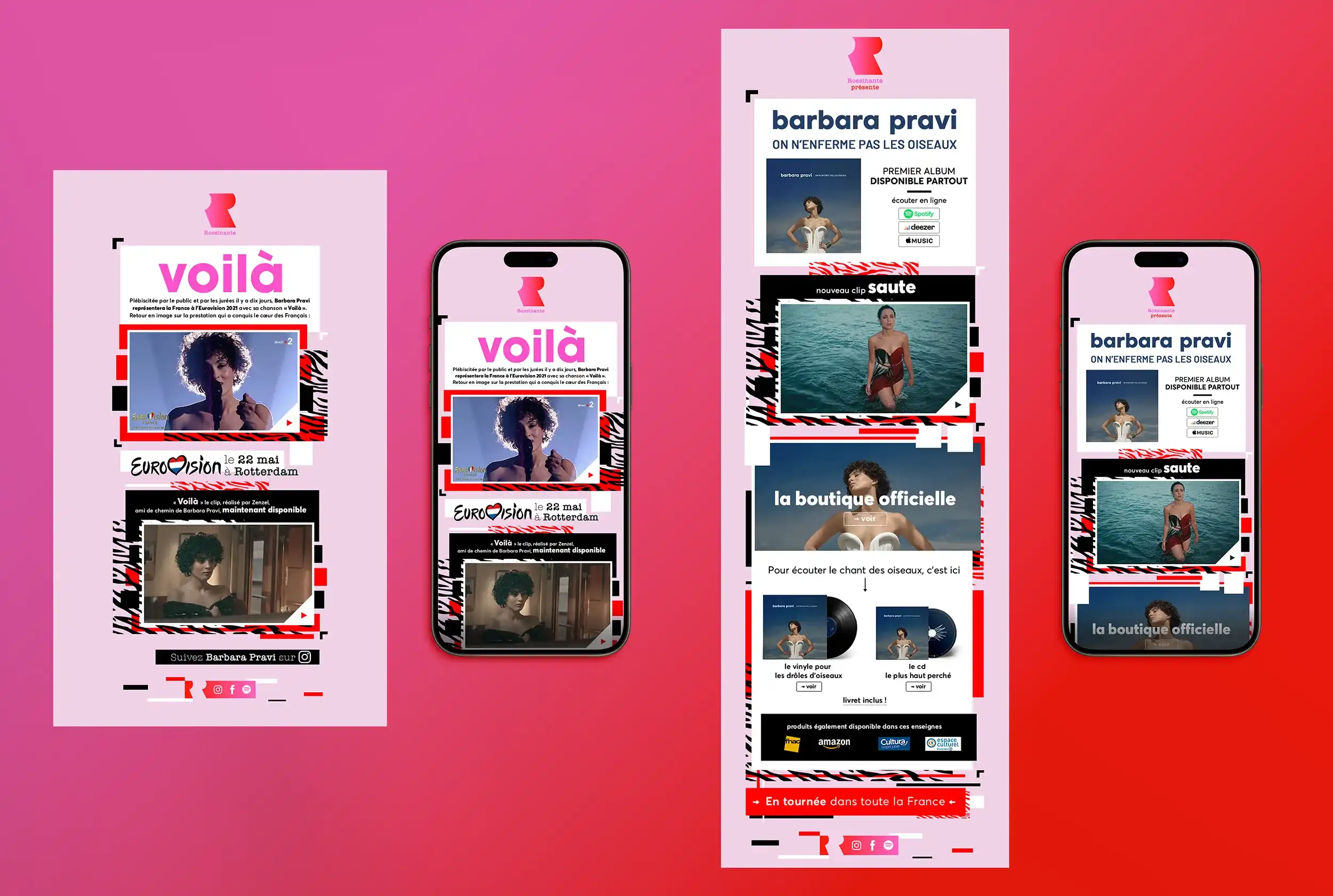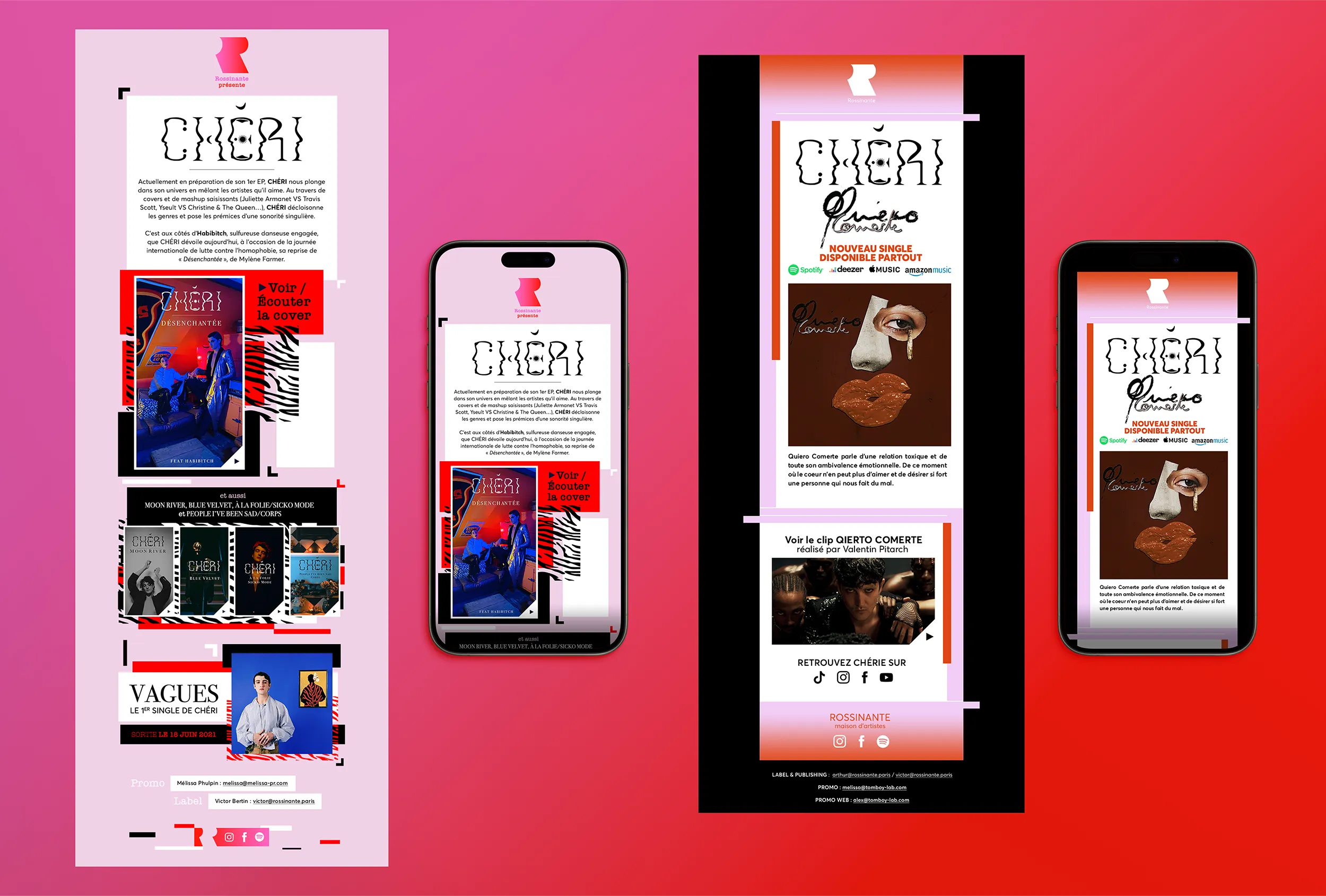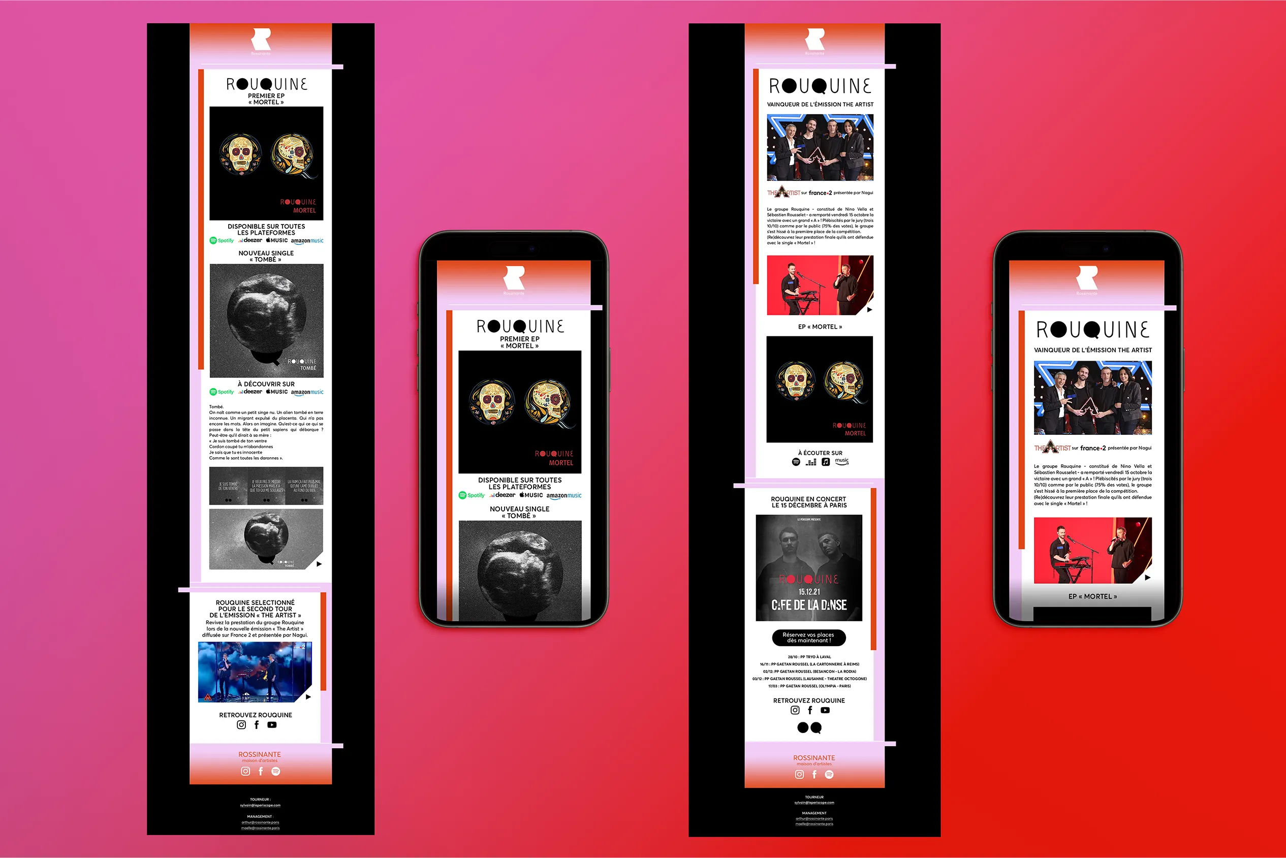 Création des communications ecards de différents artistes de la maison de disques Rossinante.